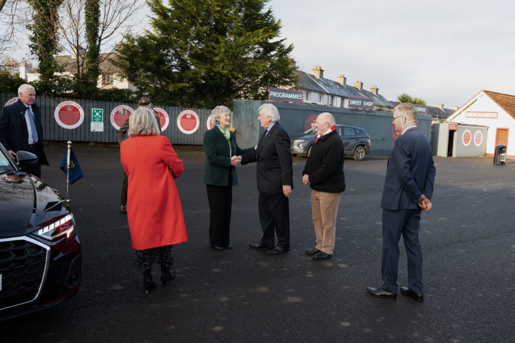 Having been welcomed on arrival by Chairperson Tommy Higgins and Albert Higgins, the President met Rovers staff and volunteers, along with players from the club’s academy, Women’s First Team and the National Learning Network group. This was followed by a tour of the club’s outdoor museum with Kevin Colreavy and the Sligo Rovers Heritage Group.